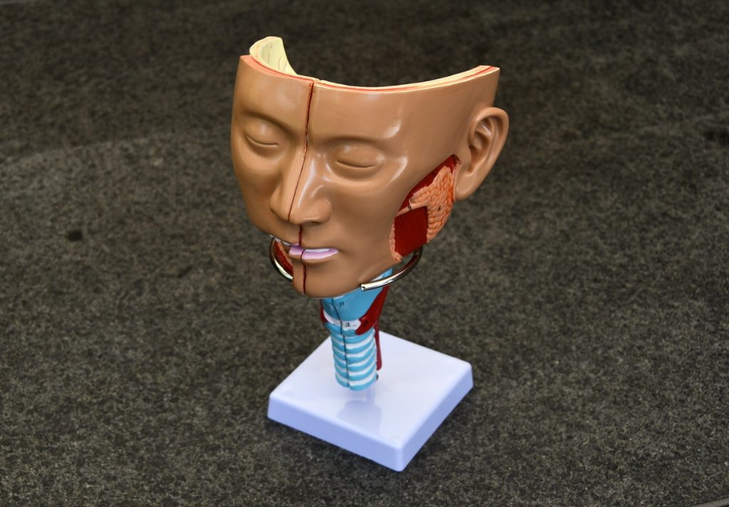 Met het splitsbare anatomiemodel van het hoofd kan beeldend uitleg gegeven worden bij mond- en laryngeale structuren. De twee dwarsdoorsnedes zitten met magneten aan elkaar en kunnen eenvoudig gesplitst worden.